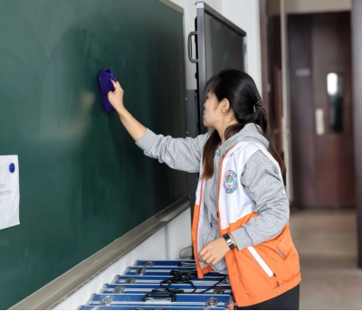 清洁环节,志愿者们分工明确,将实验室内各类物品摆放归位,清扫实验室地面,擦拭实验室内黑板以及各仪器设备,实验室清洁高效而有序。