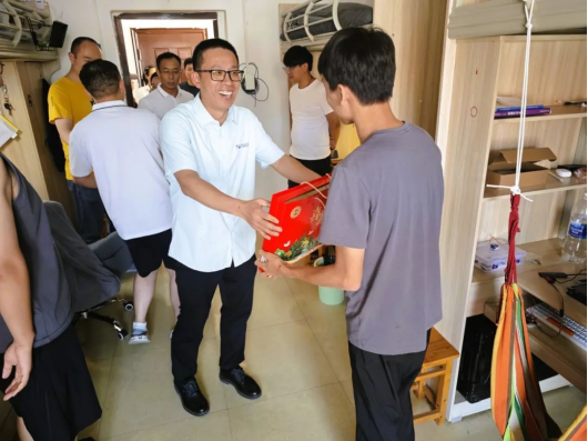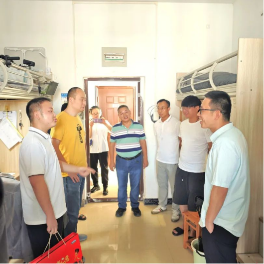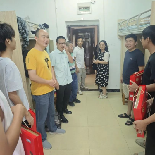 2024年9月14日,9728太阳集团党总支书记赵春哲、院长冯玉明、党总支副书记廖红富、副院长李洪兵、副院长代祥光以及全体辅导员走访了学院部分本科及研究生新生宿舍,为同学们送上节日祝福。