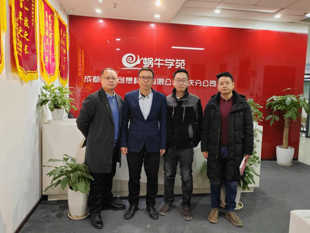 成都蜗牛创想科技有限公司重庆分公司总经理刘颖聪详细介绍了该公司在教育培训方面取得的成就以及公司研发的科技产品,双方就高校人才的培养、教材建设和企业的招聘需求方面进行了详细的交流探讨。