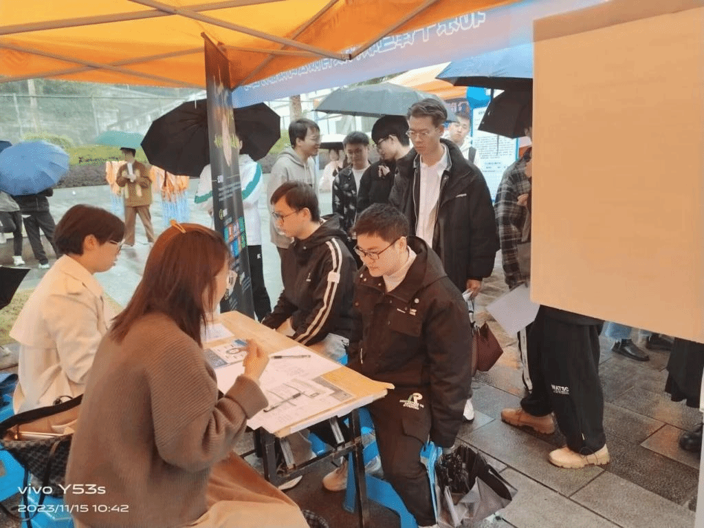 虽然天空飘着小雨,但同学们就业热情不减。用人单位和毕业生双方就工作内容、岗位职责、发展前景、薪资待遇等进行了热烈交流。据统计,现场学生投递简历500余份,初步达成就业意向100余人,部分2025届毕业生前往交流学习。