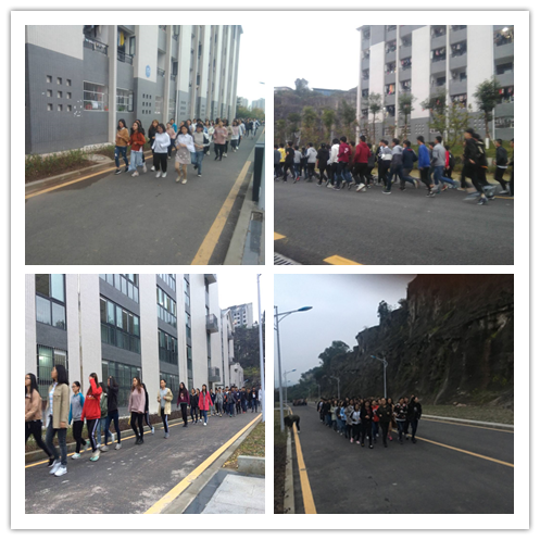 每天早上(周三除外)晨曦初露,各班学生在体育委员的带领下整齐列队,从18栋楼下停车场出发,绕着食堂周边的线路,迎着朝阳,和着晨风,迈着铿锵的步伐,在校园里画上了一道亮丽的风景线。