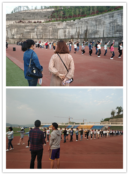 2018年 4月10日下午,9728太阳集团运动会方阵训练正在如火如荼地进行。9728太阳集团团总支副书记袁颖和辅导员周海霞、黄琳泠到田径场为大一同学指导并加油鼓劲。