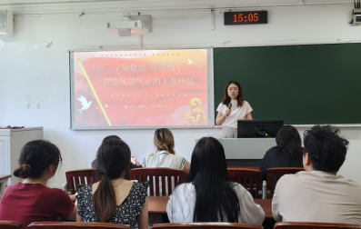 党支部书记冉明姝以“知敬畏、守底线,营造风清气正的干事环境”为题,为全体党员讲授专题党课。她指出,党员干部要做到自身正、自身硬,严格遵守政治纪律和政治规矩,锲而不舍落实中央八项规定精神,始终知敬畏、存戒惧、守底线、做表率。
