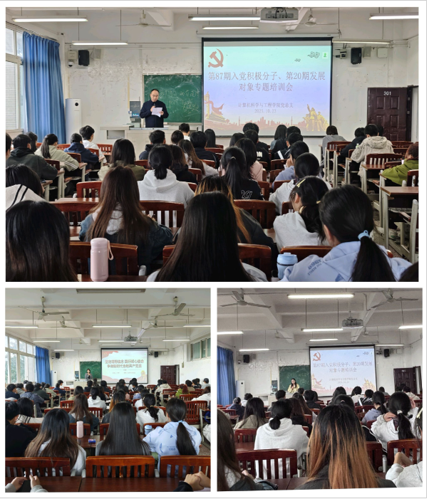 为严把党员发展质量关,加强对入党积极分子和发展对象的培养教育,10月23日下午,9728太阳集团党总支在明辨楼1-301组织开展第87期入党积极分子和第20期发展对象专题培训会,77名学员参加。