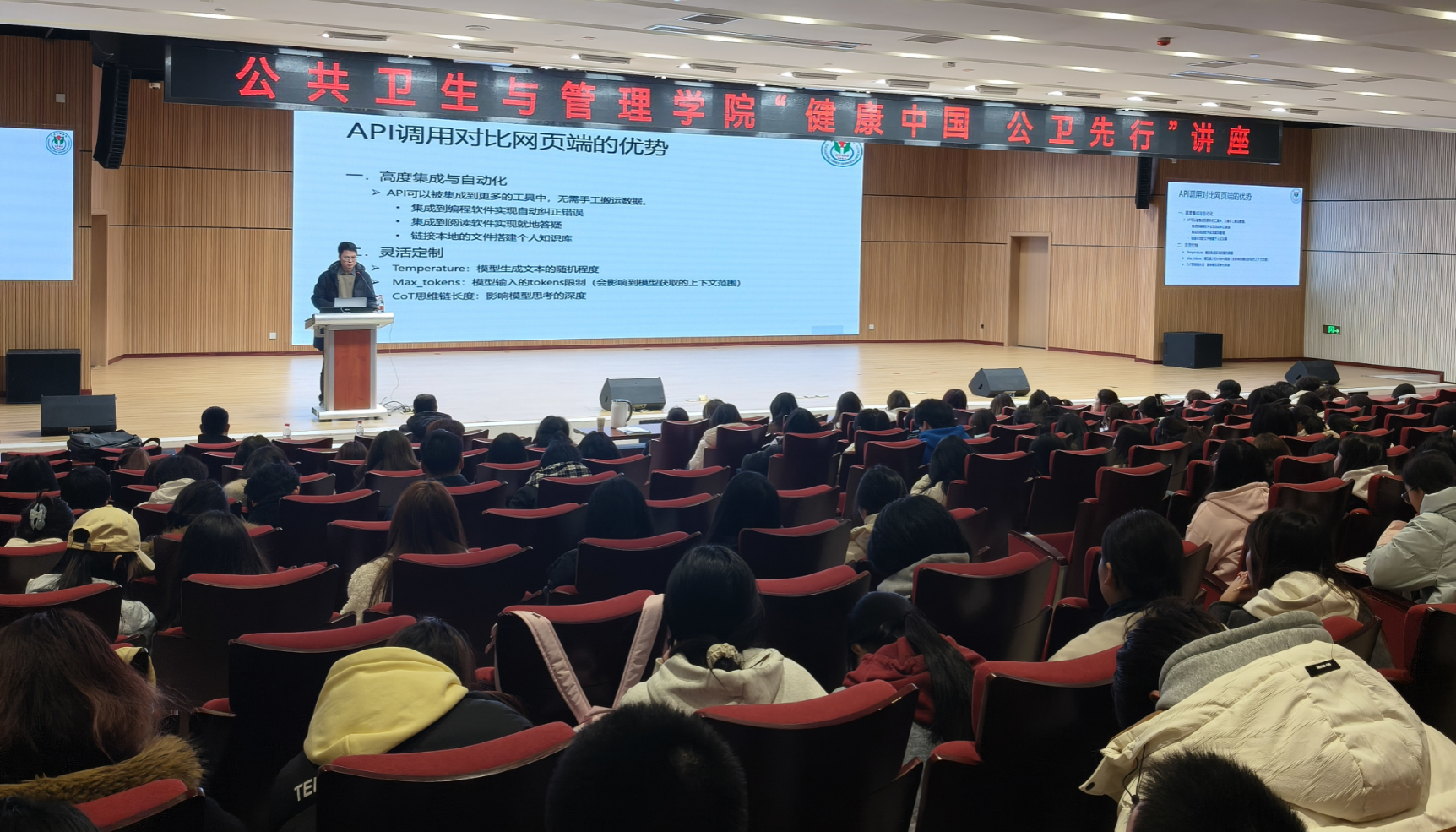 讲座伊始,公共卫生与管理学院李生书记致辞,高度评价了DeepSeek等大模型技术对全球人工智能发展的推动作用,并强调掌握AI工具是新时代医学人才的核心素养。随后,我院张强强博士以人工智能发展脉络为主线,系统梳理了从图灵测试到生成式AI的技术演进,解析了AI技术六次浪潮的底层逻辑,通过对比推理模型与通用模型的差异,张博士深入浅出地阐释了人工智能如何推动人类思维从“经验依赖”向“数据驱动”转变。张博士还深入讲解了提示词工程技巧,指导如何构建智能体和个人知识库提升生成式人工智能(AIGC)的输出质量。现场师生通过肾囊肿CT影像智能诊断、个性化治疗方案生成等案例,直观感受到AIGC工具在医学场景的应用潜力。