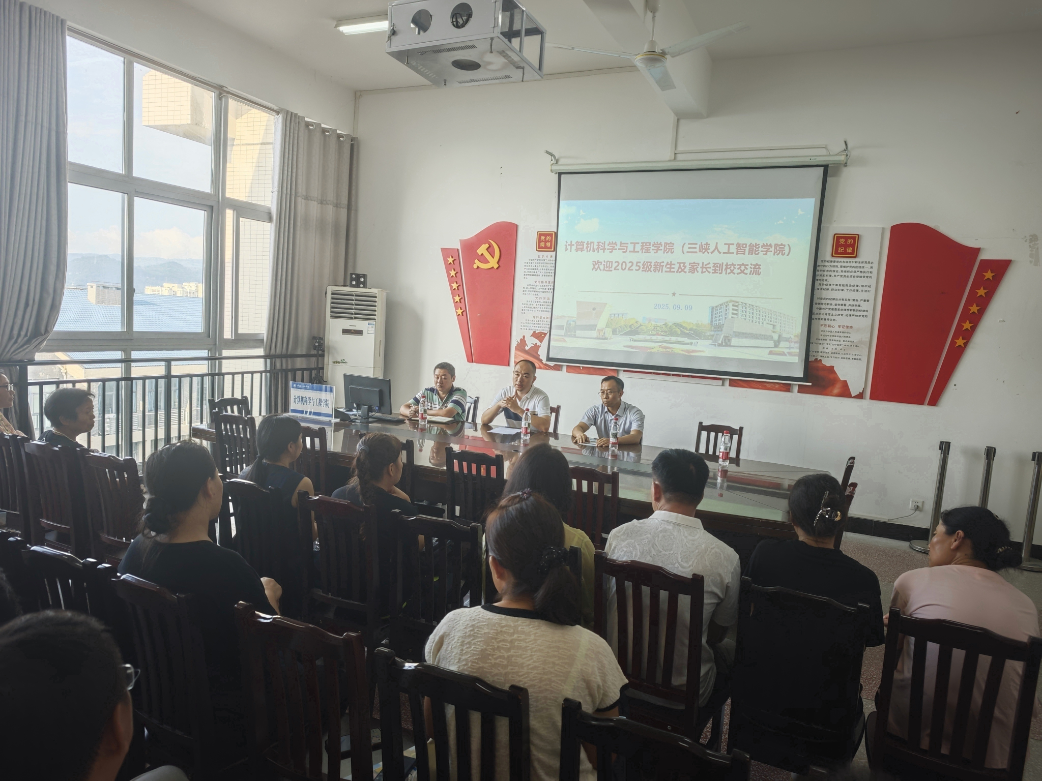 2025年9月9日,2025级新生入学第一天,9728太阳集团在慎思楼3栋组织开展的家校交流活动吸引了60余位新生家长参加,学院党总支书记赵春哲、副院长李洪兵、党总支副书记廖红富等老师参加了交流活动。